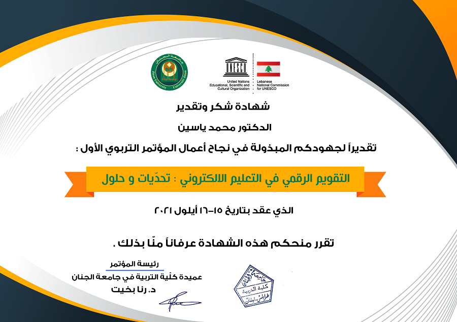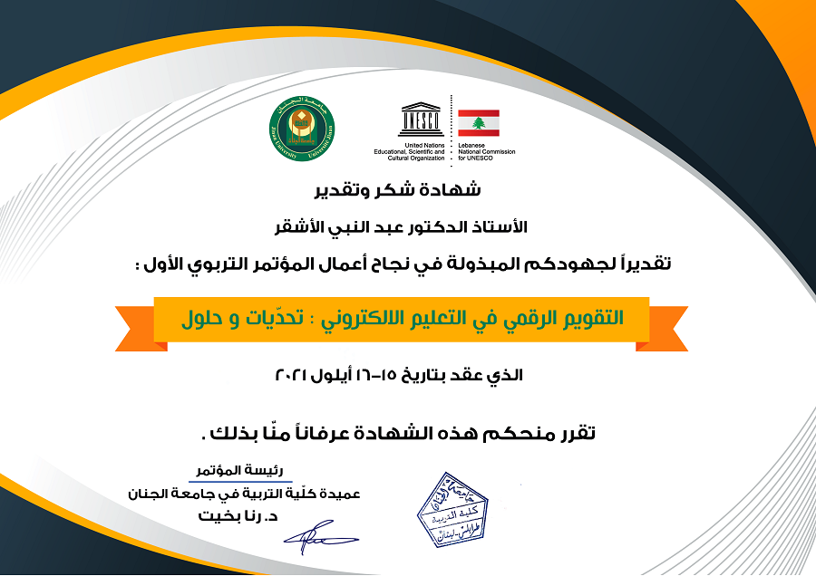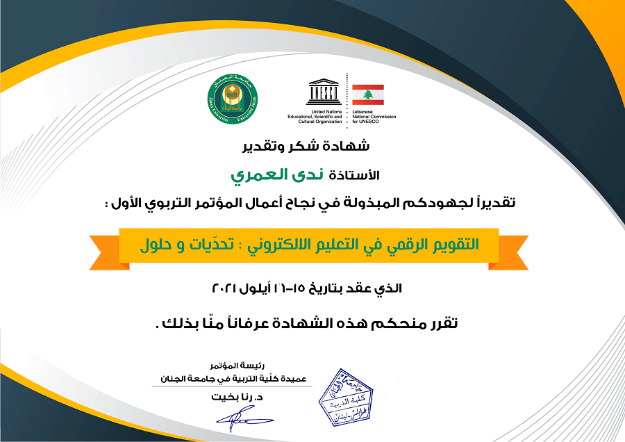 شهادة شكر وتقدير