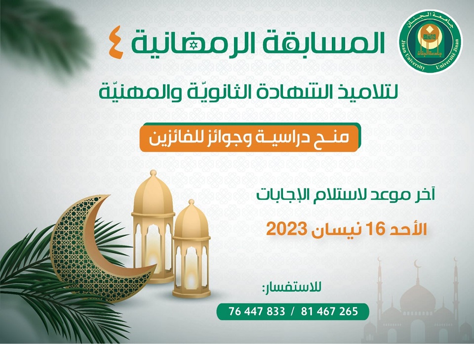 جامعة الجنان تطلق المسابقة الرمضانية (4) " لتلاميذ الشهادة الثانويّة والمهنيّة.